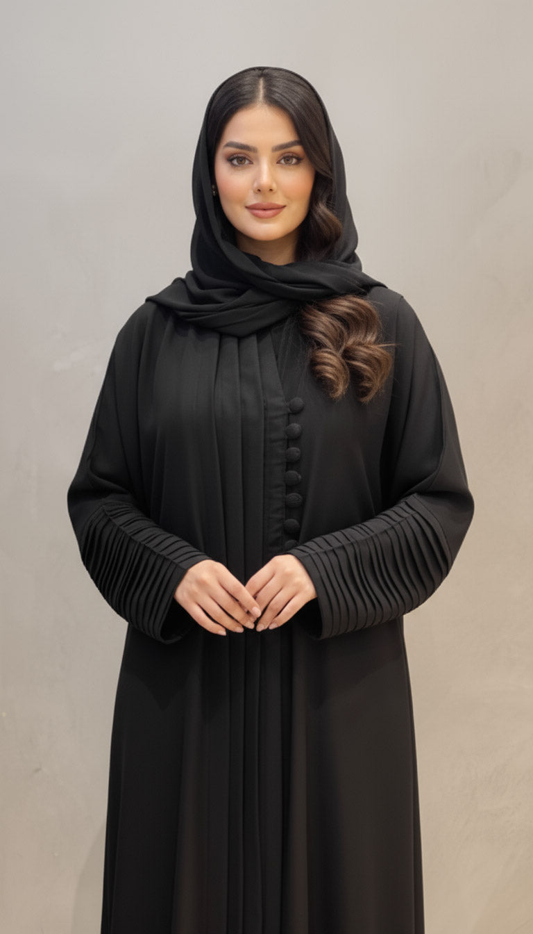 A practical abaya with a simple and elegant design, combining comfort and style for everyday wear.