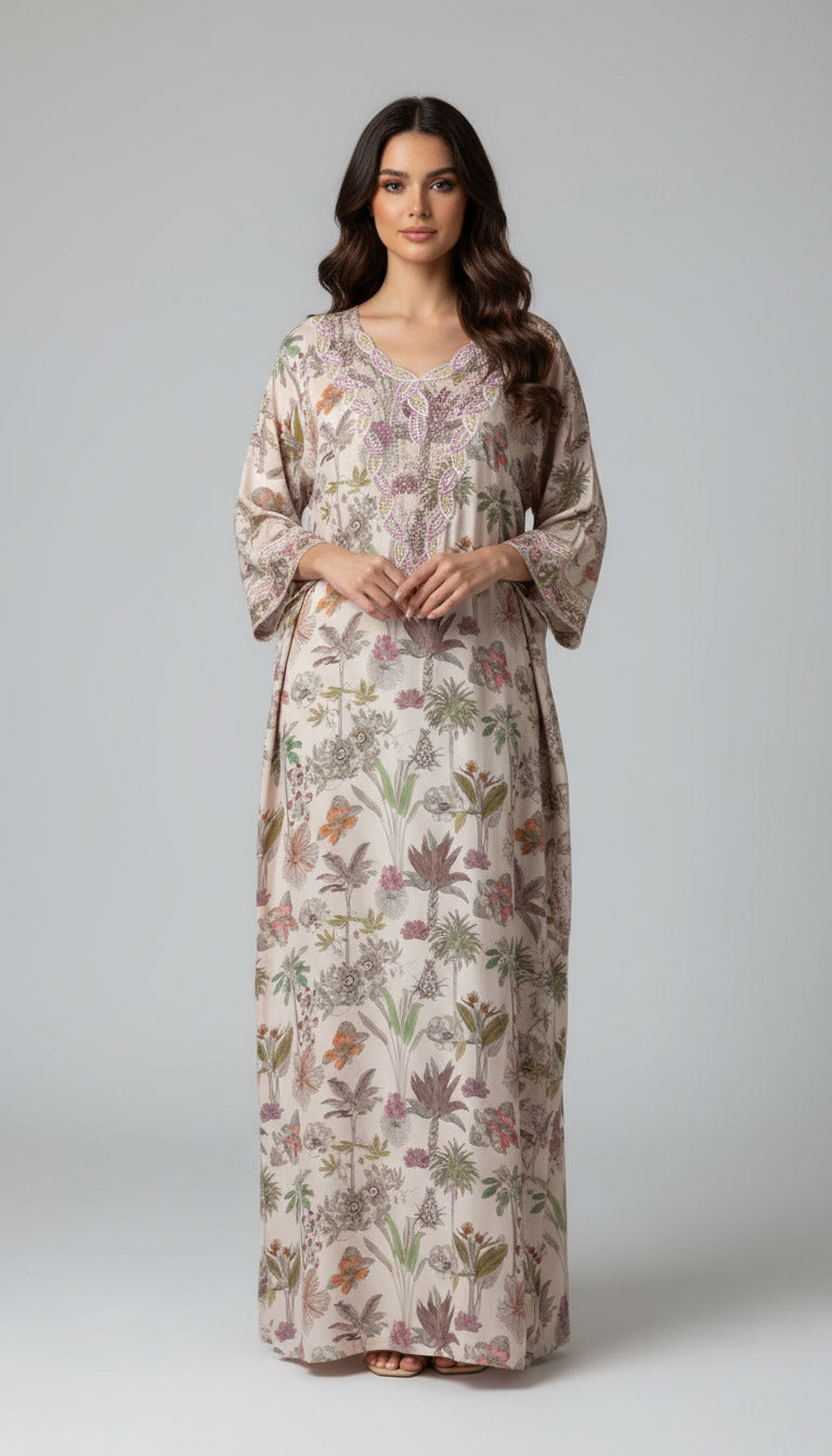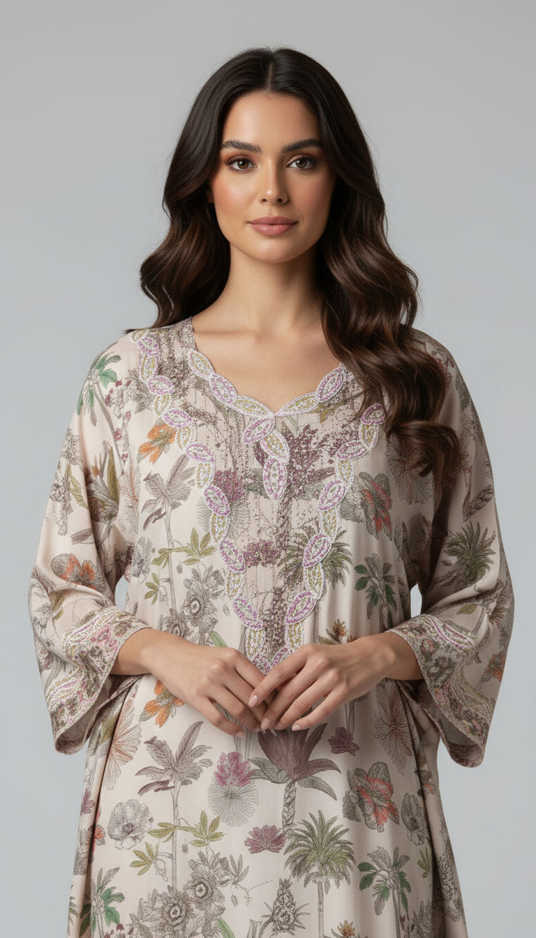 Liberty cotton mukhawar with flowing floral motifs and exquisite craftsmanship, reflecting the elegance of every detail.