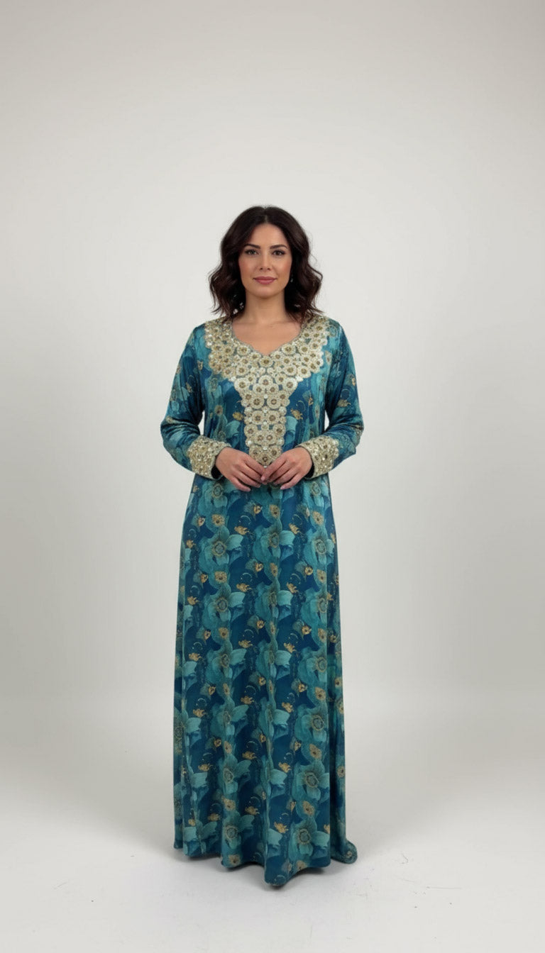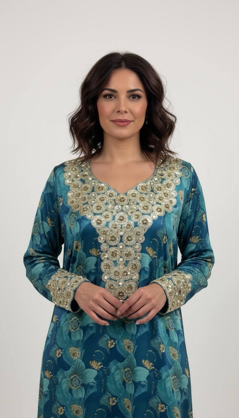 مخور من القطن الفاخر مزين بالورود ولمسة من اللون الذهبي، يضفي فخامة وأناقة لا مثيل لها.